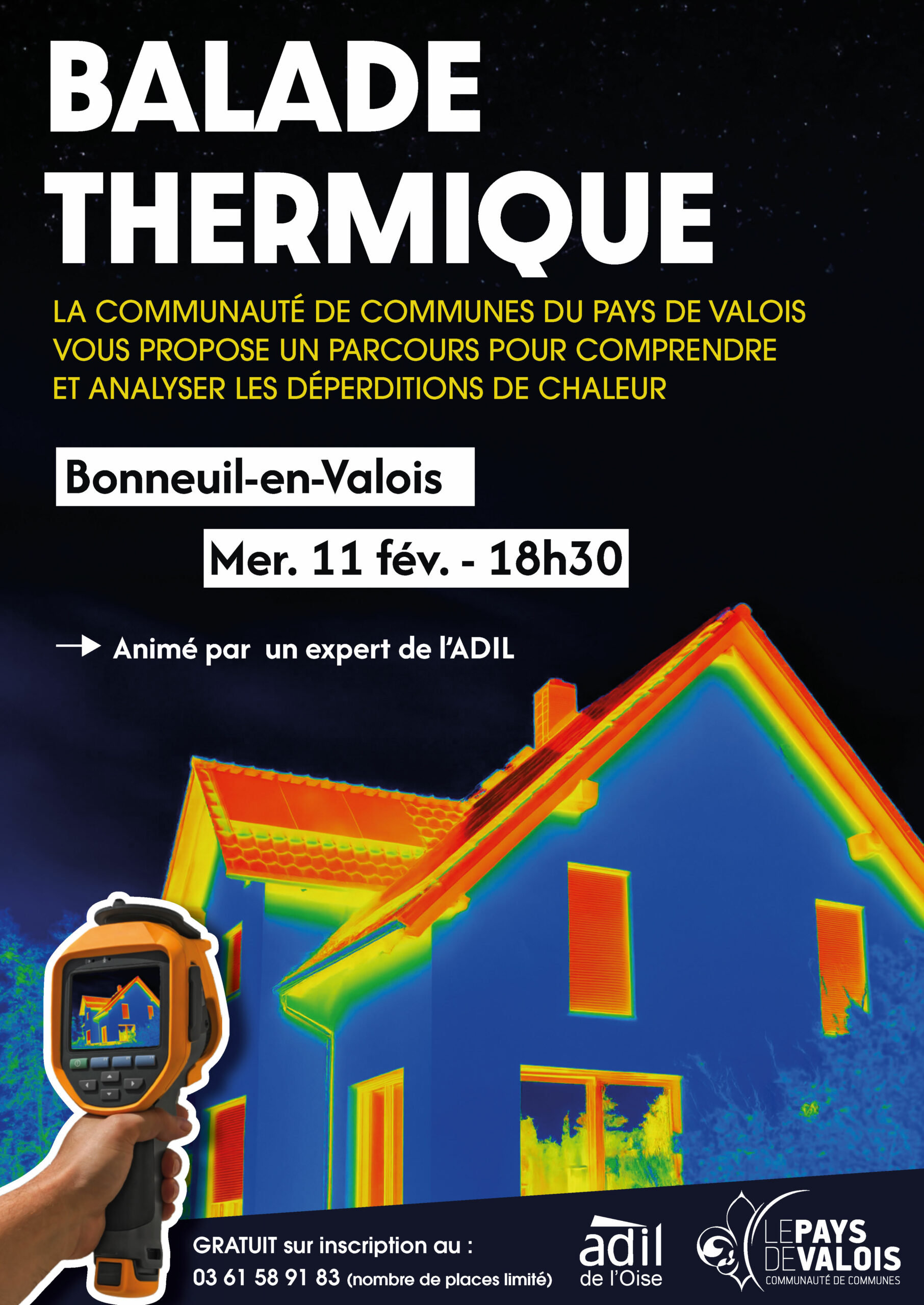 La Communauté de Communes du Pays de Valois, en partenariat avec l’ADIL 60, propose des balades thermiques gratuites pour mieux comprendre les déperditions de chaleur des logements. À l’aide d’une caméra thermique, un expert analyse différents types de bâti, avant un temps d’échange sur les solutions de rénovation énergétique.