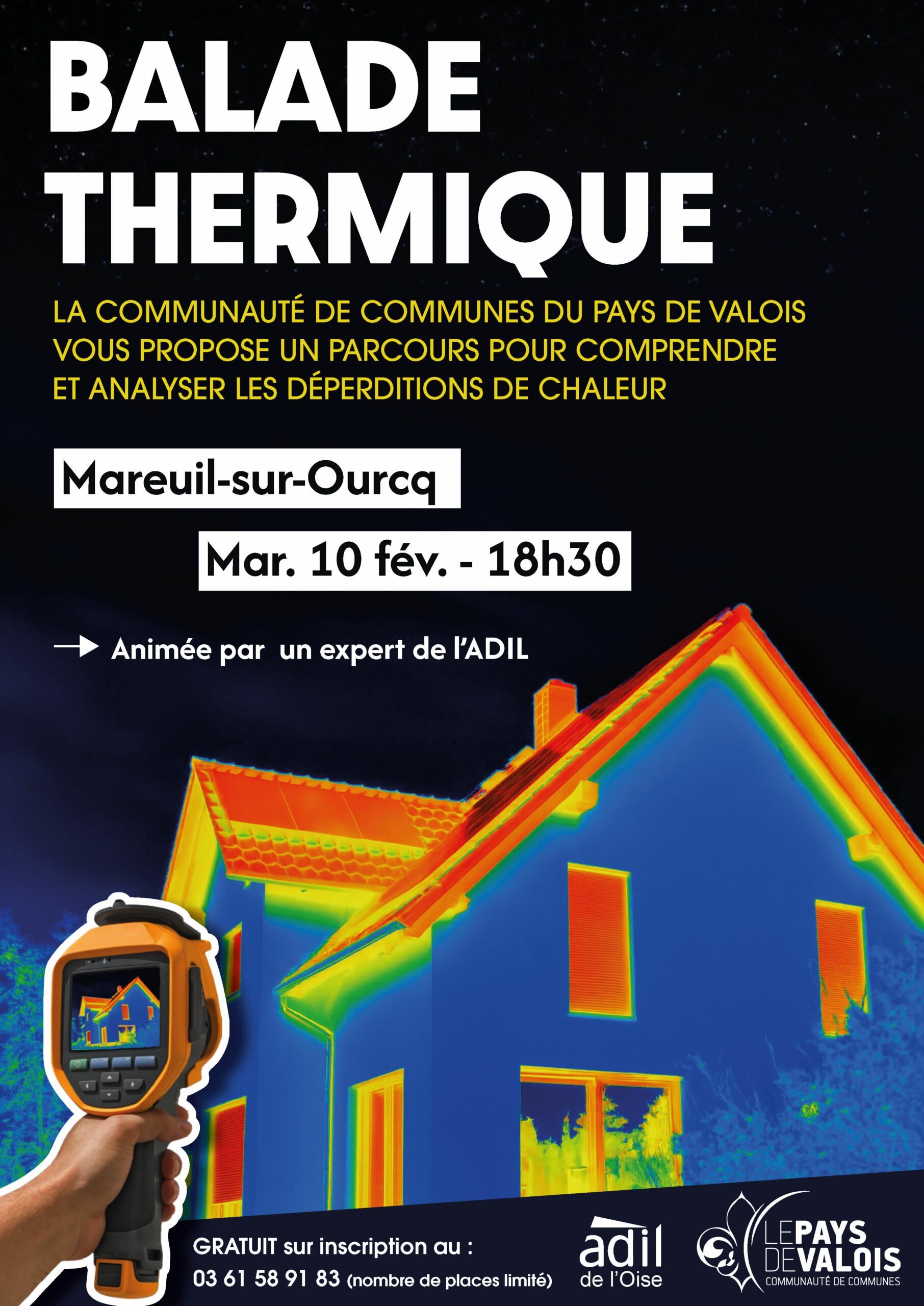 La Communauté de Communes du Pays de Valois, en partenariat avec l’ADIL 60, propose des balades thermiques gratuites pour mieux comprendre les déperditions de chaleur des logements. À l’aide d’une caméra thermique, un expert analyse différents types de bâti, avant un temps d’échange sur les solutions de rénovation énergétique.