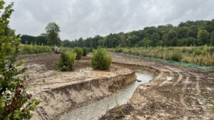 À Thury-en-Valois, la restauration d'un tronçon de la rivière de la Grivette a été réalisée cet été. Après la mise en place de filets de protection pour les amphibiens et une pêche électrique ayant permis de sauver plusieurs dizaines de poissons, le tronçon du cours d’eau, de 500m environ, a été asséché pour réaliser les travaux. Le terrassement a redessiné de nouveaux méandres, achevés fin septembre, avant la pose d’un matelas de cailloux pour recréer un fond alluvial favorable aux poissons. Des mares ont également été aménagées sur les zones humides pour récréer un environnement adapté à la biodiversité. Dernière étape en octobre : les plantations, confiées aux enfants du territoire, qui mettront notamment en terre des iris d’eau pour redonner vie à cet écosystème.