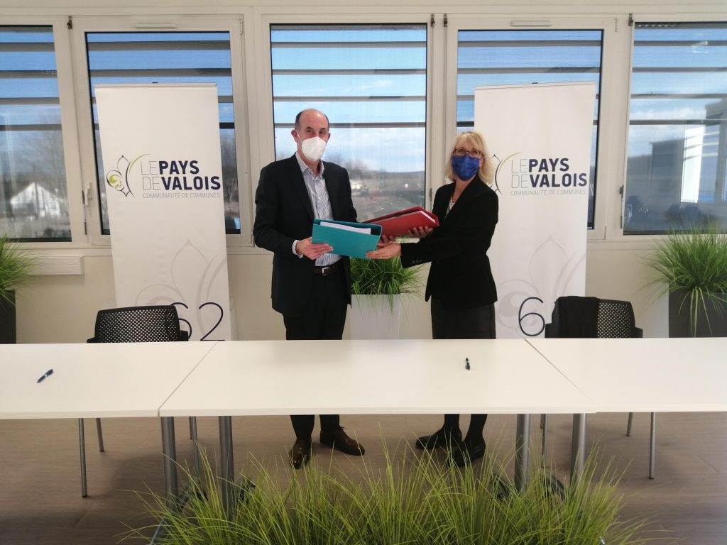 Le 31 décembre dernier, Didier Doucet, président de la CCPV, et Valérie de Rochechouart, directeur général d'Equalia, ont signé le contrat de concession du Centre aquatique du Valois pour une durée de 7 ans.